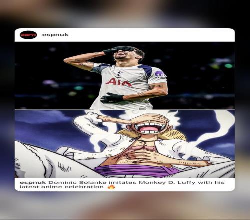 在解釋這個(gè)慶祝動(dòng)作時(shí),索蘭克表示:“是這樣的,我們家又要迎來(lái)一個(gè)新成員了,我的妻子正在懷孕。所以這個(gè)進(jìn)球我想獻(xiàn)給她。我加入了一個(gè)小小的動(dòng)漫慶祝。我知道很多人都在等待我復(fù)出后的第一個(gè)進(jìn)球,那個(gè)動(dòng)作來(lái)自《海賊王》,這是我最喜歡的動(dòng)漫之一,是路飛的一個(gè)動(dòng)作?!蓖瑫r(shí)索蘭克在快拍中將路飛P上了熱刺的球衣。