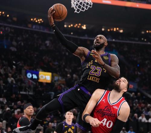 北京時(shí)間1月23日,NBA常規(guī)賽,湖人104-112逆轉(zhuǎn)快船失敗。此役湖人一度落后快船26分之多,進(jìn)入末節(jié)還落后14分,末節(jié)湖人有兩波小高潮,一波16-7與一波10-2,這兩波小高潮都是由41歲的勒布朗帶領(lǐng)打出,只可惜湖人還是輸球,41歲的勒布朗空砍23+6+5。