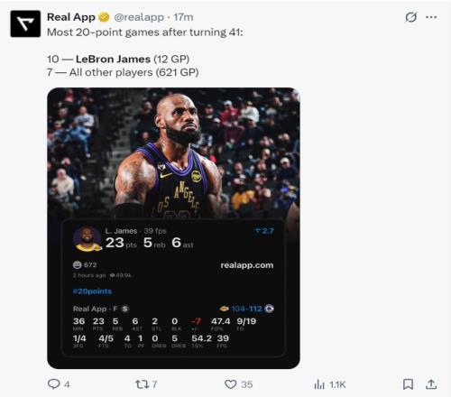 此役詹姆斯41歲后拿到第10場(chǎng)20+,其余的球員合計(jì)621場(chǎng)只有7次20+,詹姆斯再度刷新歷史首人紀(jì)錄。