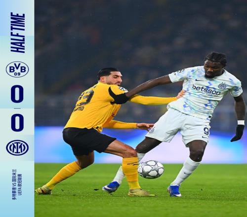 上半場比賽結(jié)束,我們暫時客場0比0戰(zhàn)平多特蒙德。