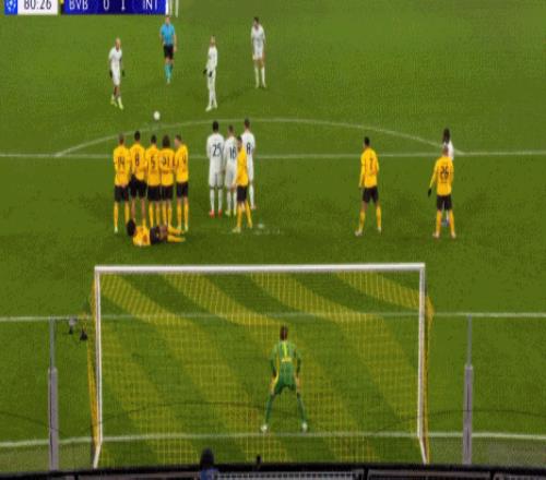 自三冠王賽季的斯內(nèi)德以來,國米首次歐冠客場打進直接任意球