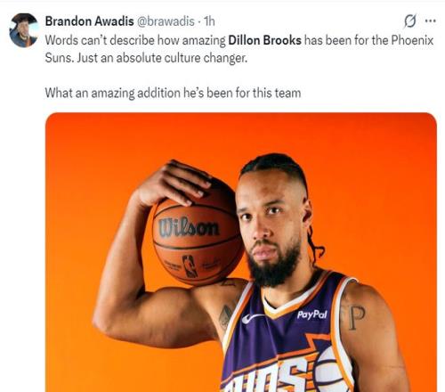 太陽記者布蘭登-安瓦迪:無法用言語形容狄龍對太陽做出的貢獻(xiàn)有多么巨大,他完全改變了鳳凰城的文化,他對這個團(tuán)隊有著巨大的補充。