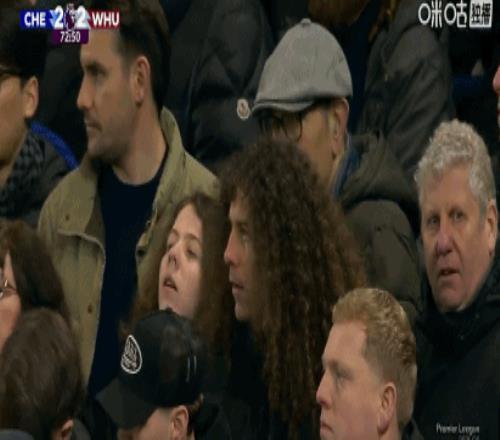 第74分鐘,略顯喜感,看臺球迷留著庫庫雷利亞同款發(fā)型