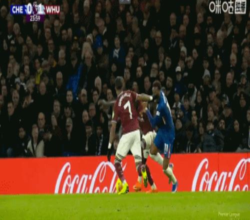 第13分鐘,薩默維爾推倒吉滕斯,裁判示意犯規(guī)