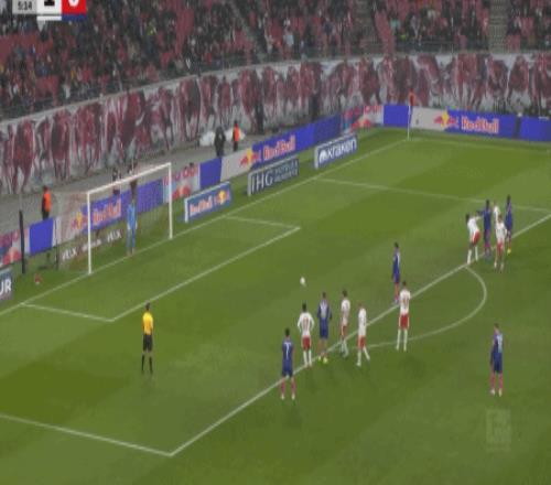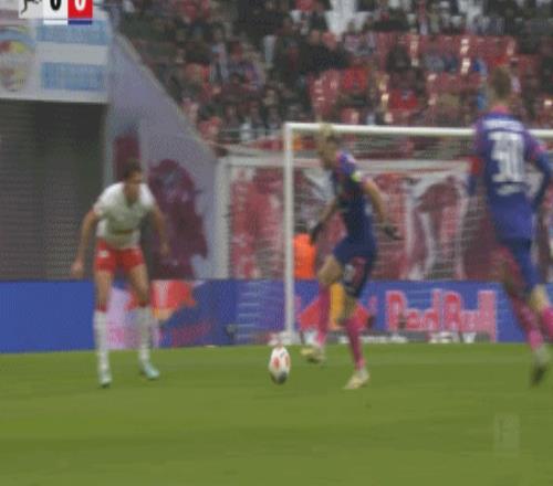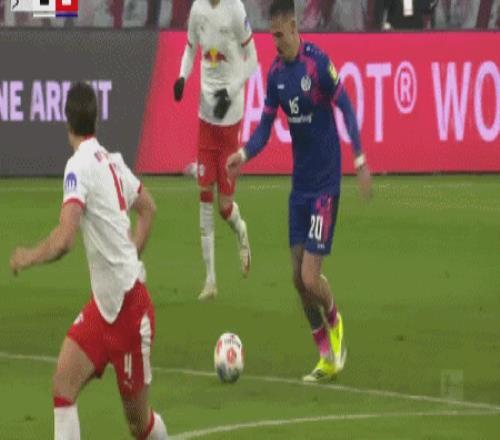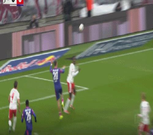 第40分鐘,康拉德-哈德頭球破門(mén),萊比錫1-0領(lǐng)先