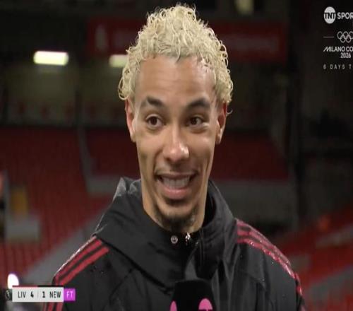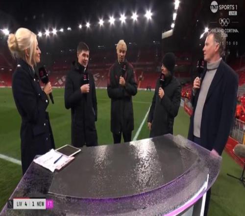 英超第24輪,利物浦主場(chǎng)4-1逆轉(zhuǎn)擊敗紐卡,此役上演梅開二度的?;倏速惡蠼邮芰薚NT體育的采訪。