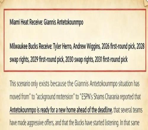 美媒撰7換1交易方案,維金斯希羅加盟雄鹿,字母哥轉(zhuǎn)投熱火