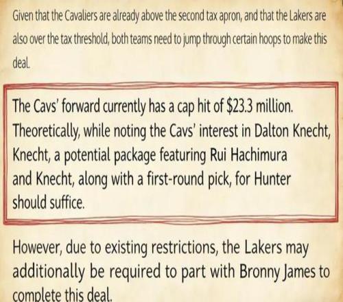 另一邊,對騎士而言,他們是近兩個賽季聯(lián)盟支出最多的球隊之一,卻并沒有取得預期的成績,目前僅以29勝21負排在東部第五,他們迫切想要擺脫亨特下賽季近2500萬美元的合同。
