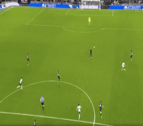 7分鐘后,曼城還有機會,羅德里的長傳打穿熱刺防線,哈蘭德不停球直接挑射,皮球越過維卡里奧,砸在球網(wǎng)上方。