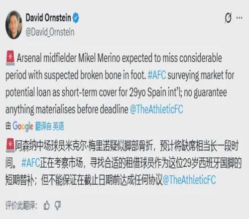 賽前,主帥阿爾特塔確認(rèn),梅里諾將接受專(zhuān)家診斷以確定傷勢(shì)嚴(yán)重程度。盡管具體傷情細(xì)節(jié)尚未完全確認(rèn),但槍手方面擔(dān)心梅里諾可能面臨長(zhǎng)期傷停,據(jù)悉他腳部一處骨頭骨折,這無(wú)疑給球隊(duì)的爭(zhēng)冠前景蒙上了陰影。